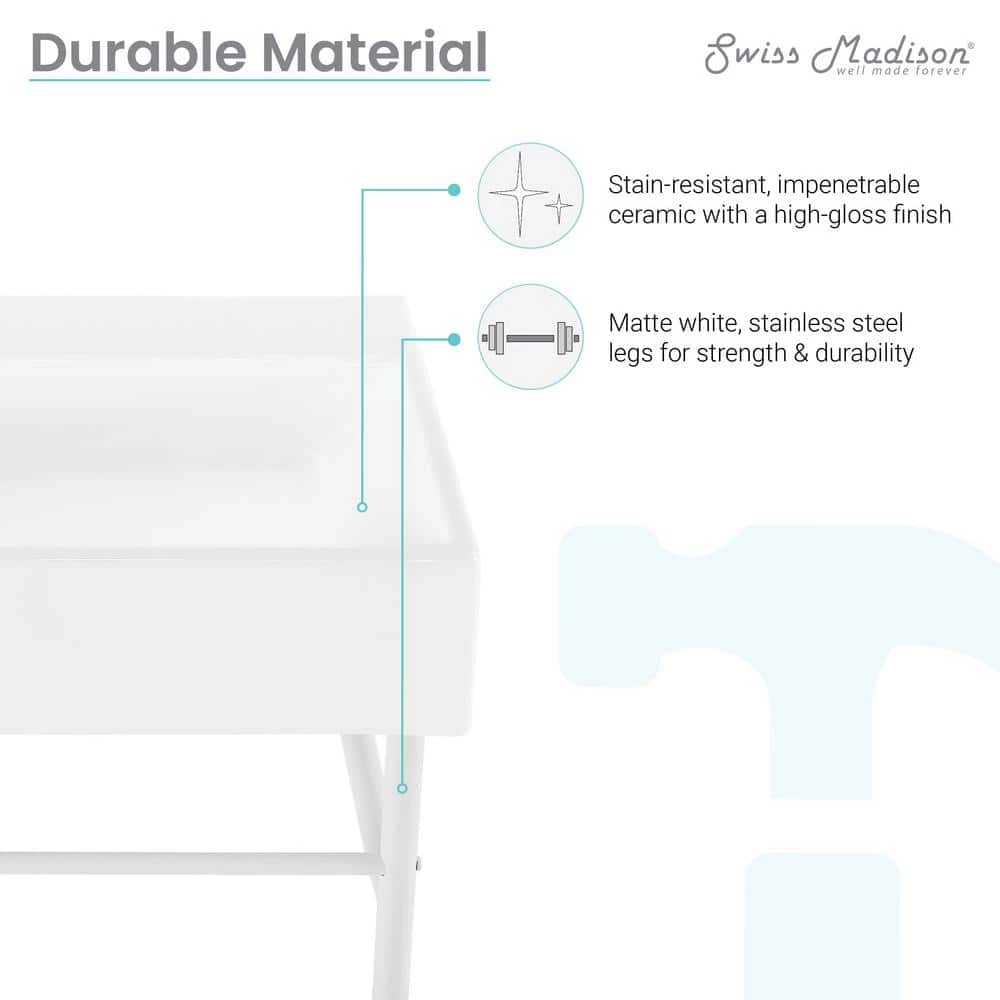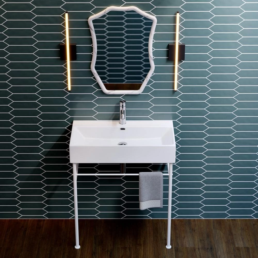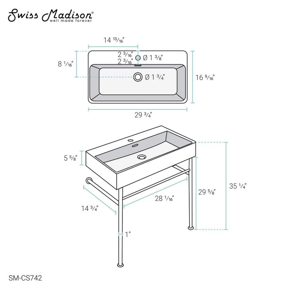 Claire console sink was designed to use minimal floor space and to make bathrooms appear more spacious. Its elongated, rectangular basin features an overflow and is ready to be paired with your favorite faucet and drain. This sink’s frame comes in a variety of finishes and includes a front bar that is perfect for hanging towels. Claire’s minimalist design will complement any bathroom.