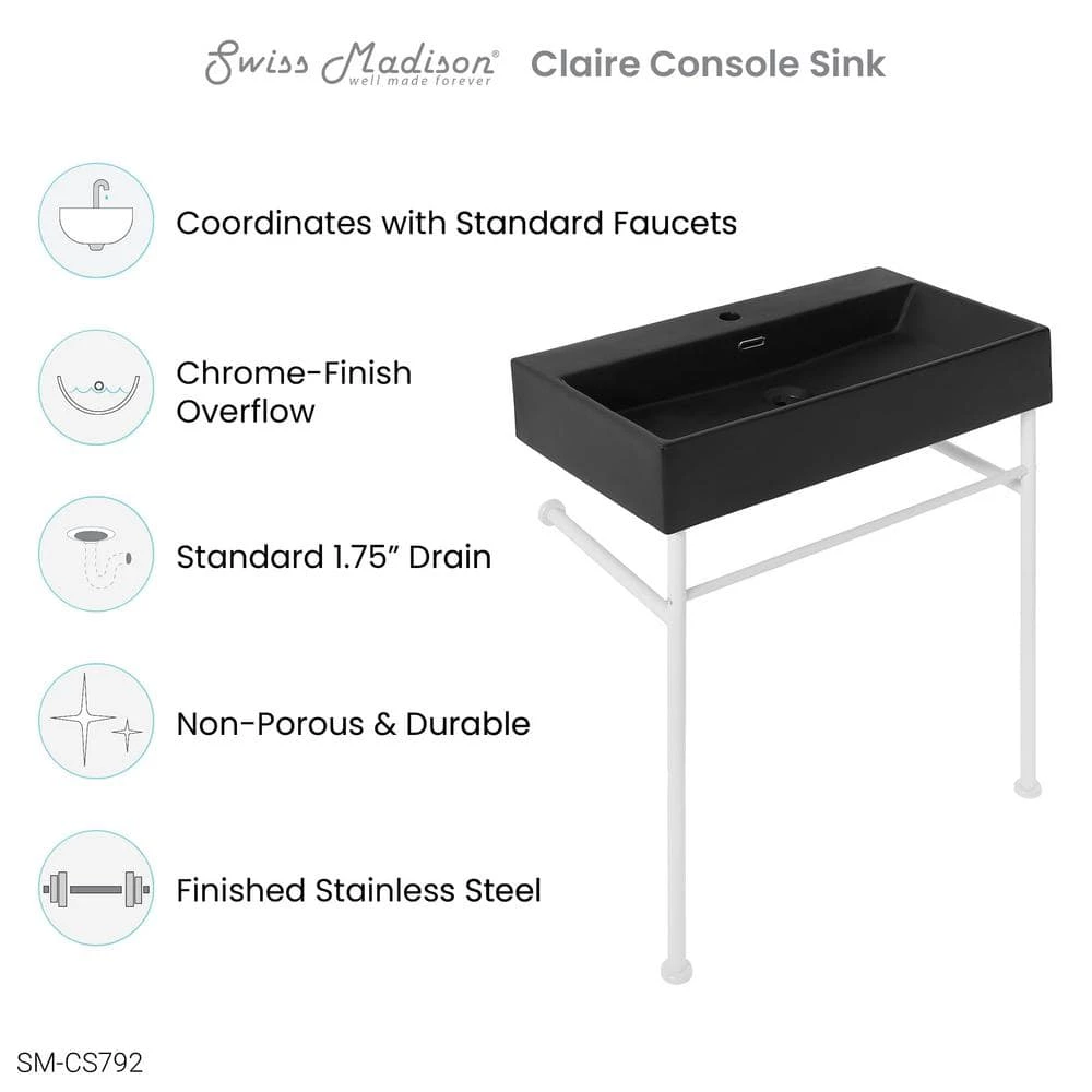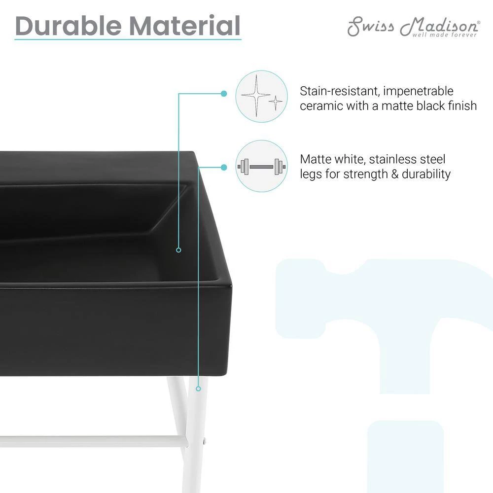 Swiss Madison Claire 30 in. Ceramic Console Sink Basin and Legs Combo in Matte Black Basin with Matte White Legs