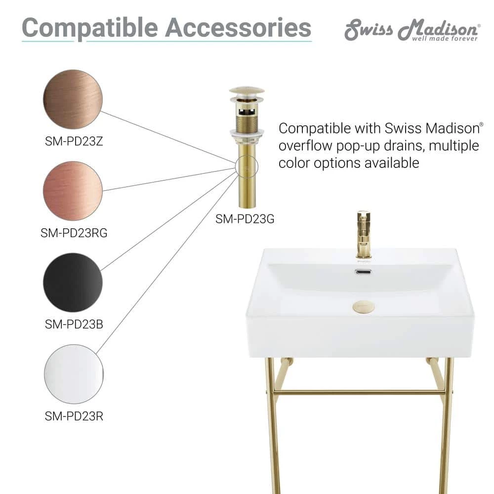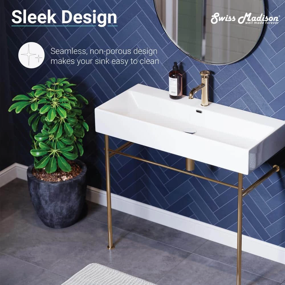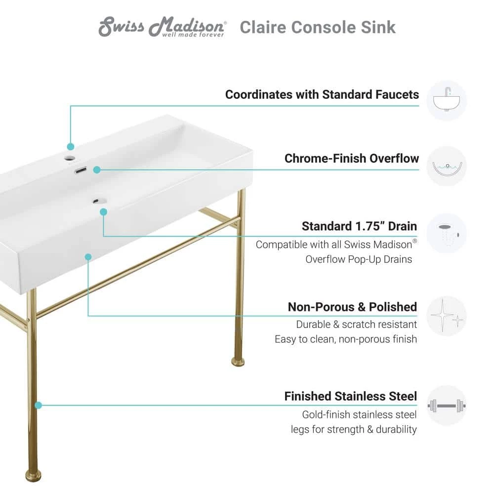 Swiss Madison Claire 40 in. Ceramic White Console Sink Basin Gold Legs