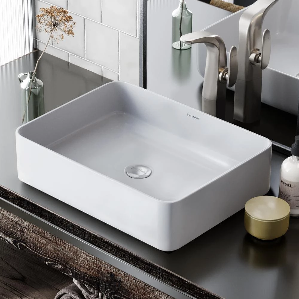 Sleek and contemporary, the Concorde vessel sink features a fresh look for classic white ceramic, in true minimalist fashion. Striking simple style, while maximizing precious bathroom space, makes above-counter sinks popular for powder rooms. Features smooth baked-on glaze, and non-porous high-gloss finish, for durable scratch-resistant and easy to clean convenience.