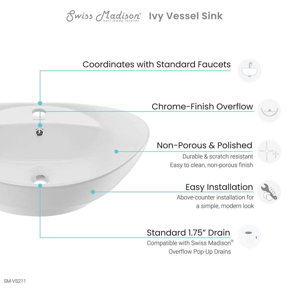Swiss Madison Ivy 23 in. Oval Ceramic Vessel Sink in White