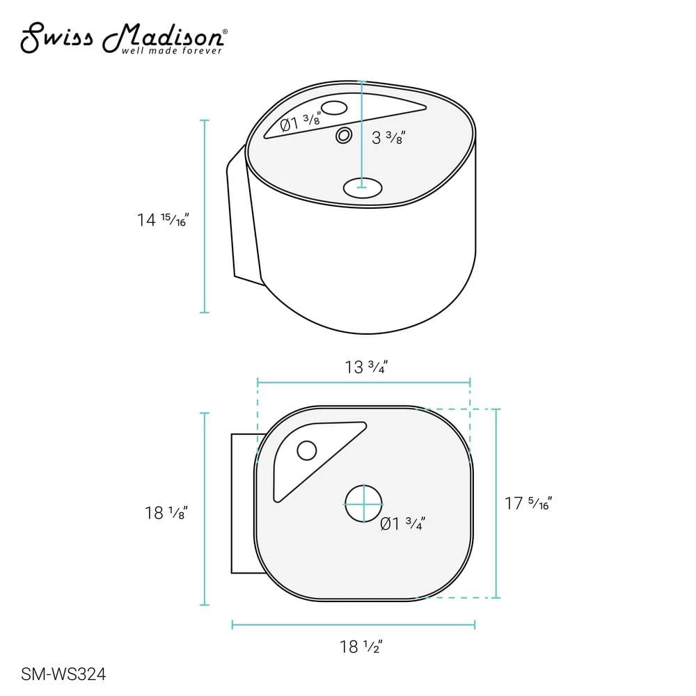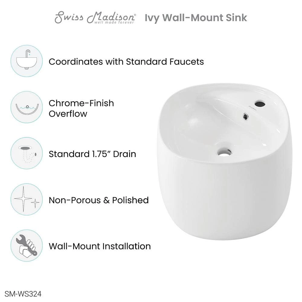 Swiss Madison Ivy Ceramic Square Wall Hung Sink in Glossy White