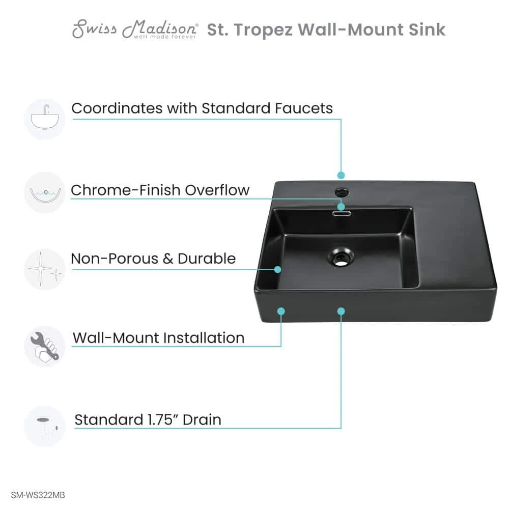 This St.Tropez Wall-Mounted Sink is a sleek and modern addition to any bathroom setting. This extremely durable non-porous and scratch resistant sink coordinates perfectly with standard faucets making it an easy installation. The seamless ceramic design is made from 1-piece as well which shows no signs of seams or lines. Additionally our wall-mounted sink is easy to maintain and clean.