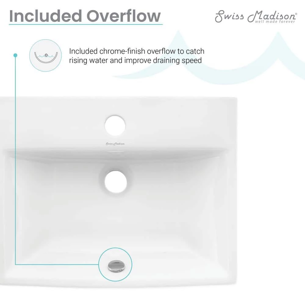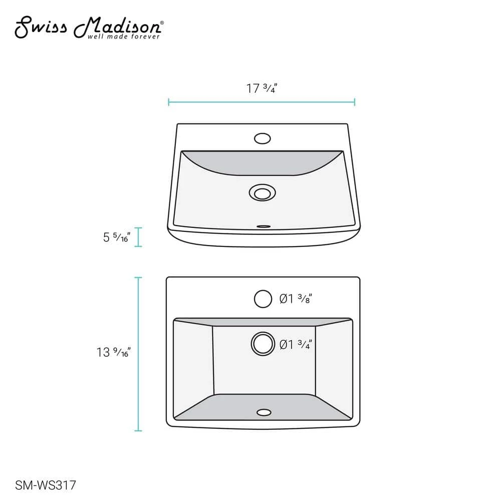 Swiss Madison’s Ceramic Wall hung sink has a elegant design that can accompany any setting. It’s convenient and compact shape fits even the smallest of areas. Constructed of Vitreous China the wall sink is a durable and long lasting selection.