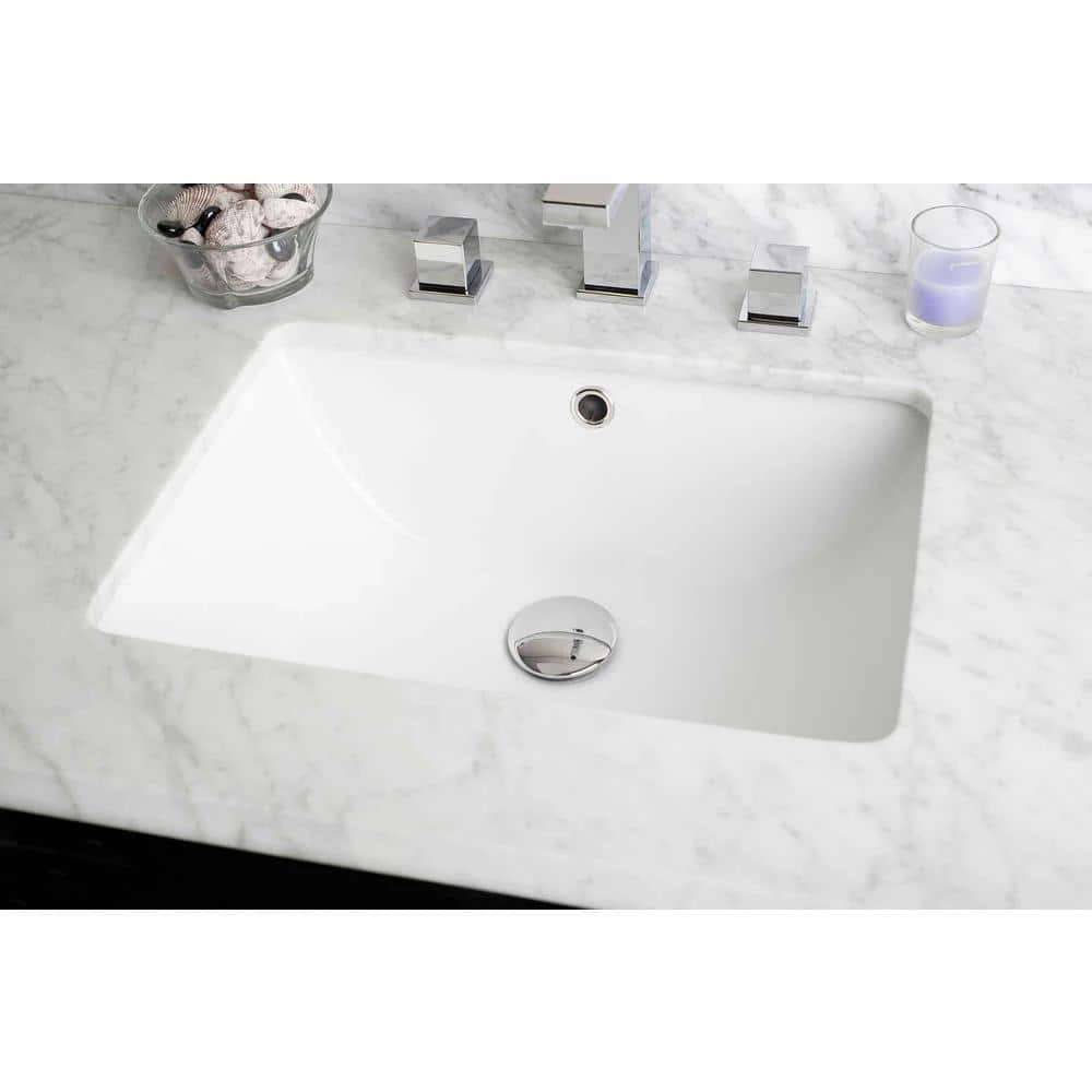 It features a rectangle shape. This undermount sink set is designed to be installed as a undermount undermount sink set. It is constructed with ceramic. This undermount sink set comes with a enamel glaze finish in White color. This transitional undermount sink set product is CUPC certified.