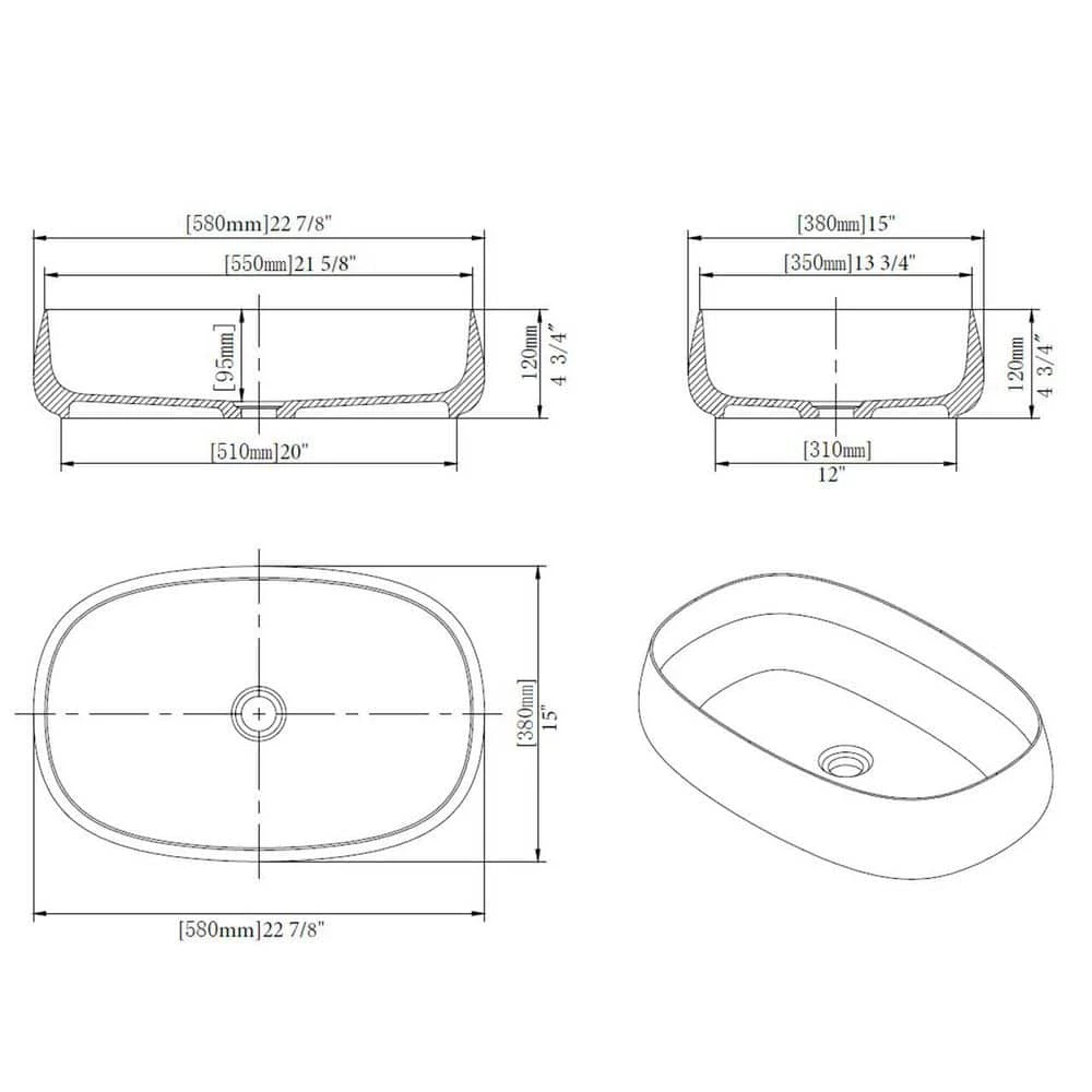 - Sink Dimensions. Exterior dimensions. 22.8″ (width) x 15″ (front to back) x 5″ (total height)