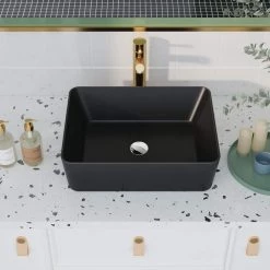 AKDY 20.6 in W x 13.5 in L Stainless Steel Bathroom Vessel Sink with Pop-Up Drain in Matte Black