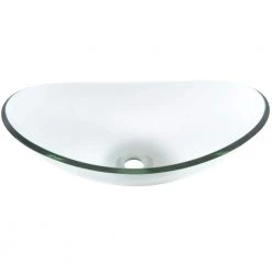 Novatto Rectangular Porcelain Vessel Sink in White with Overflow Drain in Brushed Nickel