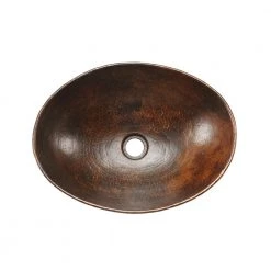 Premier Copper Products Oval Wired Rimmed Hammered Copper Vessel Sink in Oil Rubbed Bronze