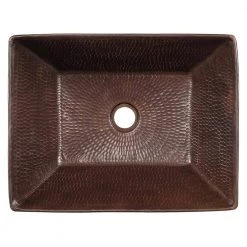 Premier Copper Products Rectangle 17 in. Wired Rim Hammered Copper Vessel Sink in Oil Rubbed Bronze