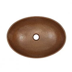 Premier Copper Products Round Wired Rimmed Hammered Copper Vessel Sink in Oil Rubbed Bronze