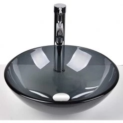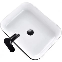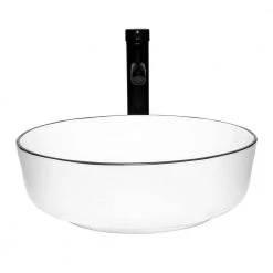 Puluomis White Ceramic Round Vessel Sink with Black Edges Design with Faucet Pop Up Drain Set