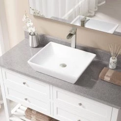 MR Direct Porcelain Vessel Sink in White with 731 Faucet and Pop-Up Drain in Brushed Nickel