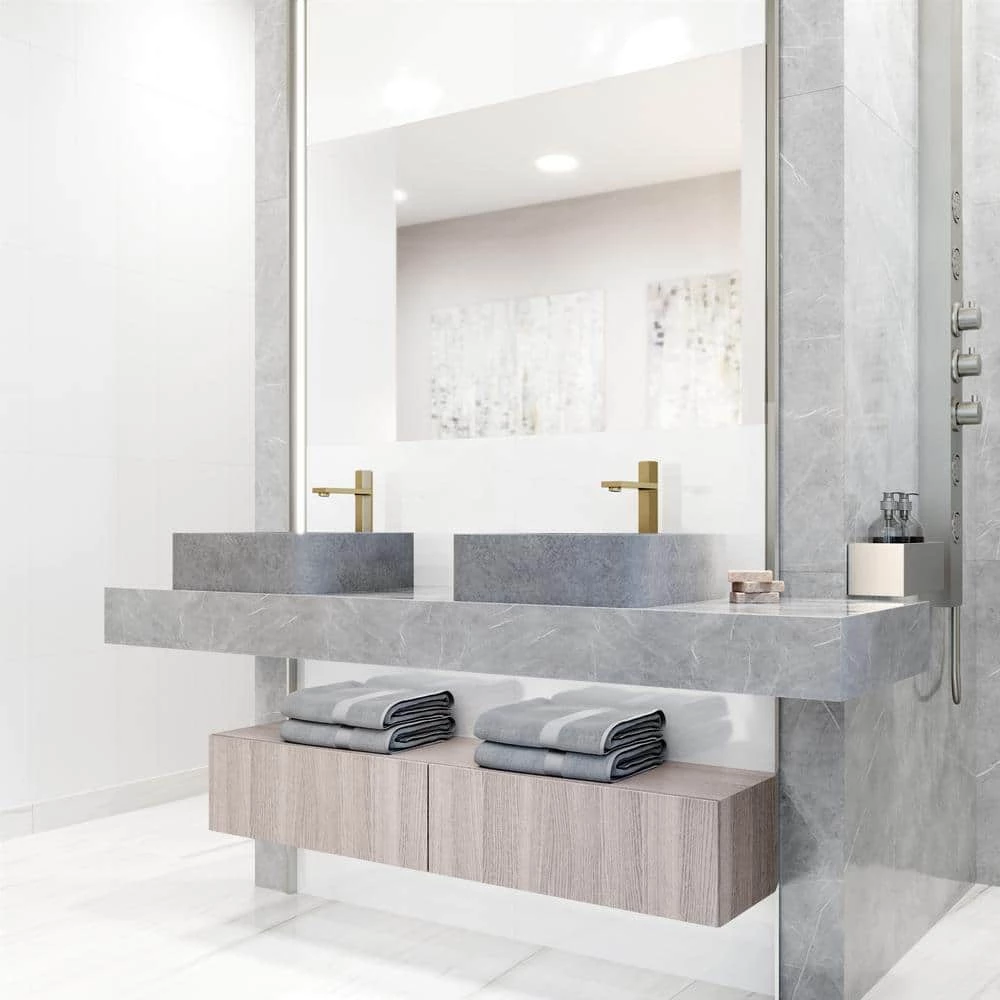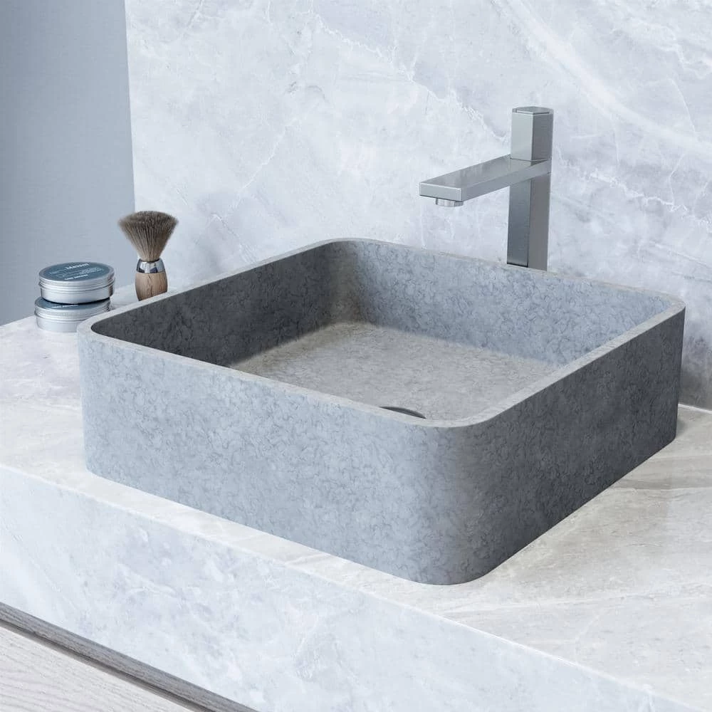 VIGO presents a beautiful bathroom vessel sink handcrafted from the Concreto Stone blend making this sink more durable and longer-lasting than traditional sink materials such as ceramic. VIGO Concreto Stone’s neutral gray color and square design complement any bathroom vessel faucet, wall mount, or countertop. Its enhanced durability ensures it remains as a staple piece in your bathroom. The Concreto Stone Collection is ideal for traditional, transitional, and modern bathroom spaces.
