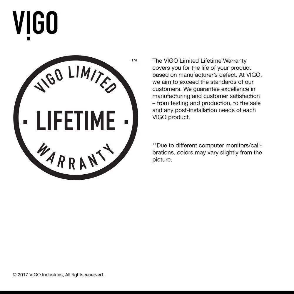 - QUALITY ASSURED WARRANTY: all VIGO bathroom sinks are protected by a limited lifetime warranty