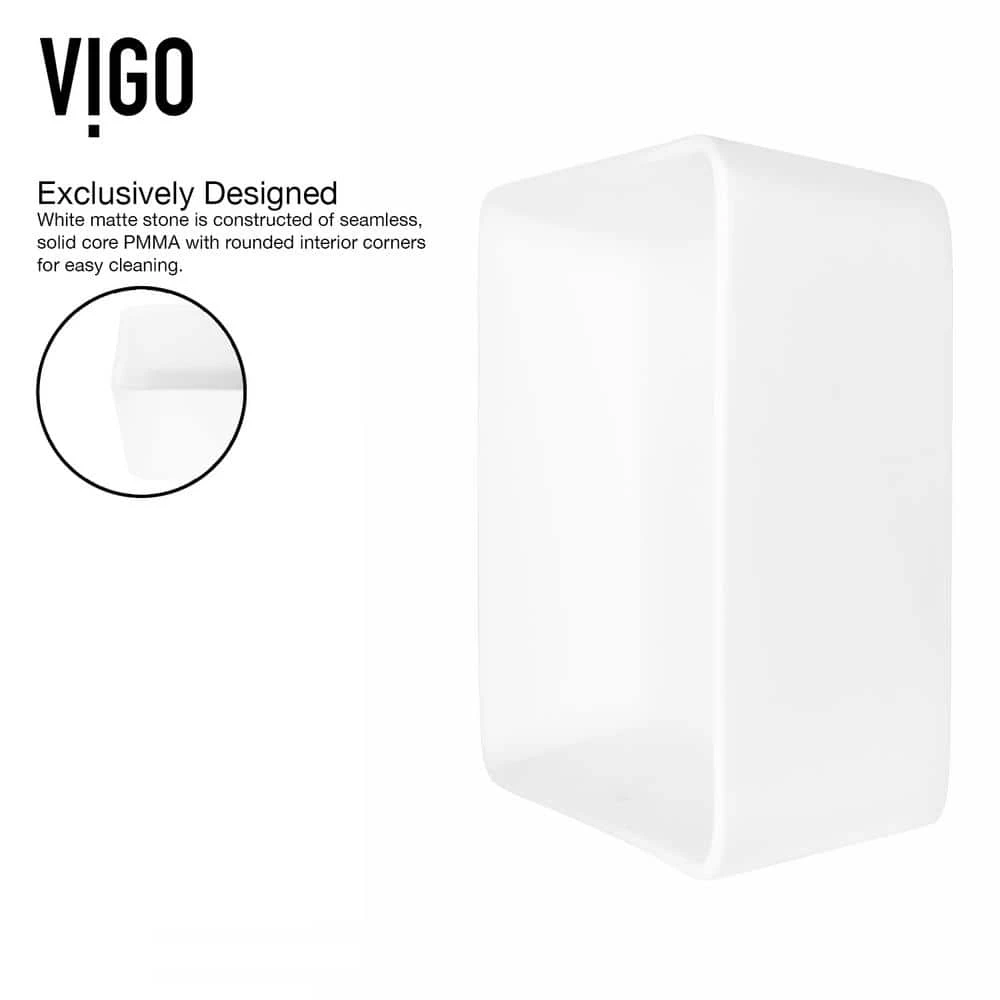 - MATTE STONE TM: VIGO’s proprietary solid core composite is smooth, non-porous and naturally hygienic that expertly resists scratches, fading, and impact