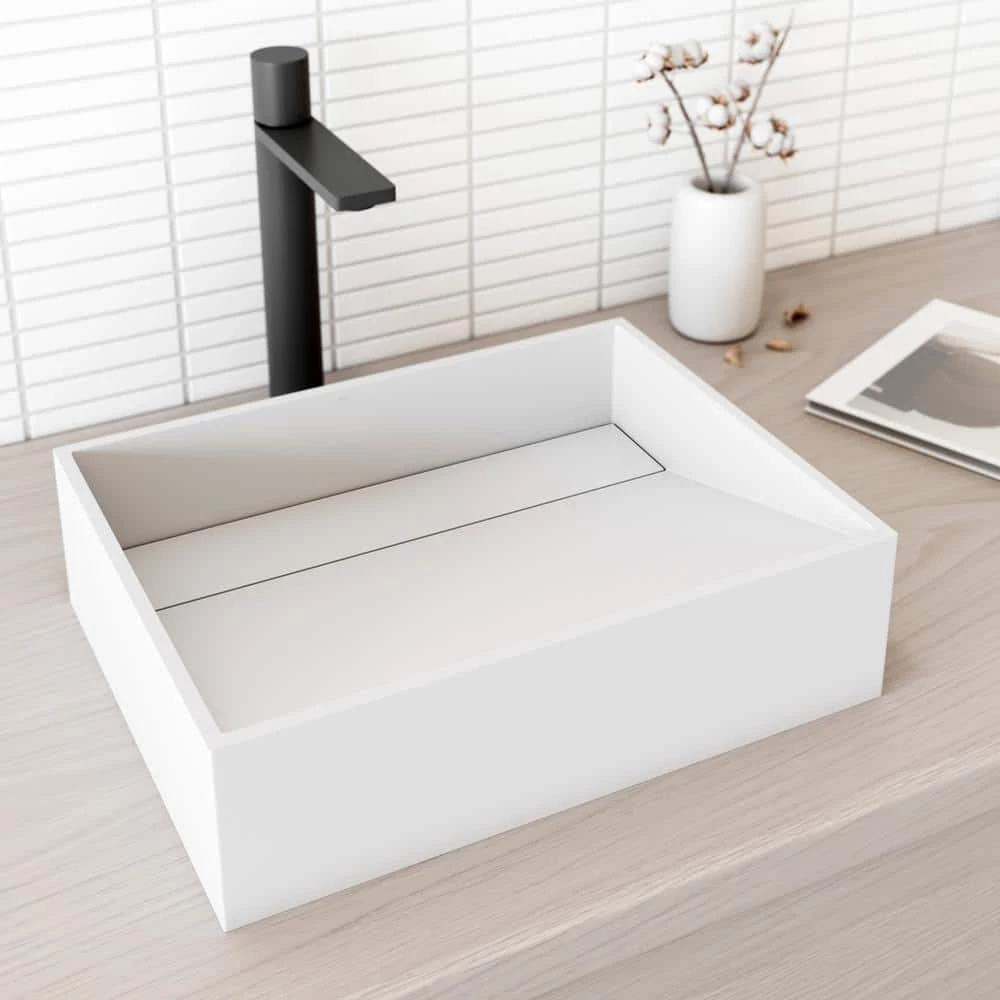 VIGO Matte Stone Starr Composite Rectangular Vessel Bathroom Sink in White
