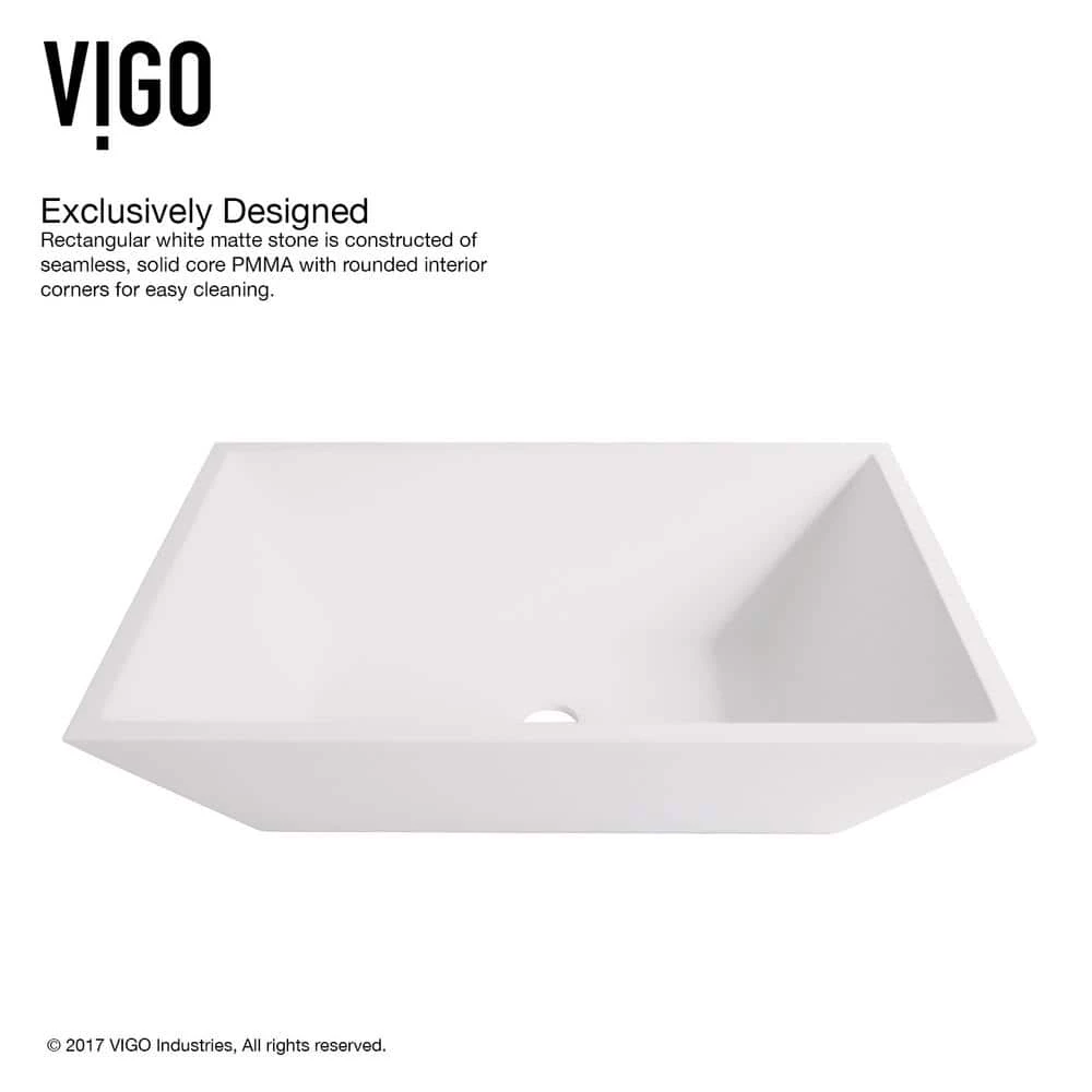 - MATTE STONE TM: VIGO’s proprietary solid core composite is smooth, non-porous and naturally hygienic that expertly resists scratches, fading, and impact