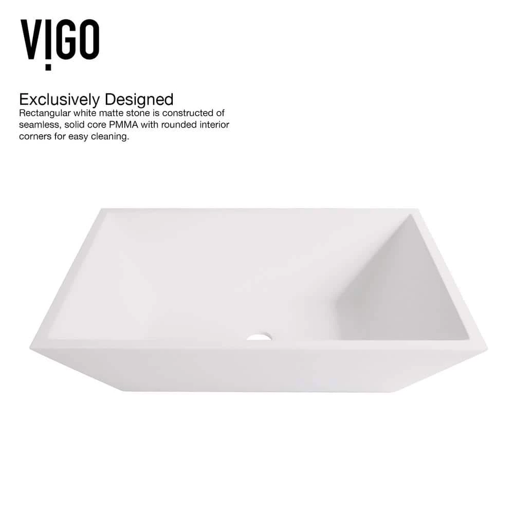- MATTE STONE TM: VIGO’s proprietary solid core composite is smooth, non-porous and naturally hygienic that expertly resists scratches, fading, and impact